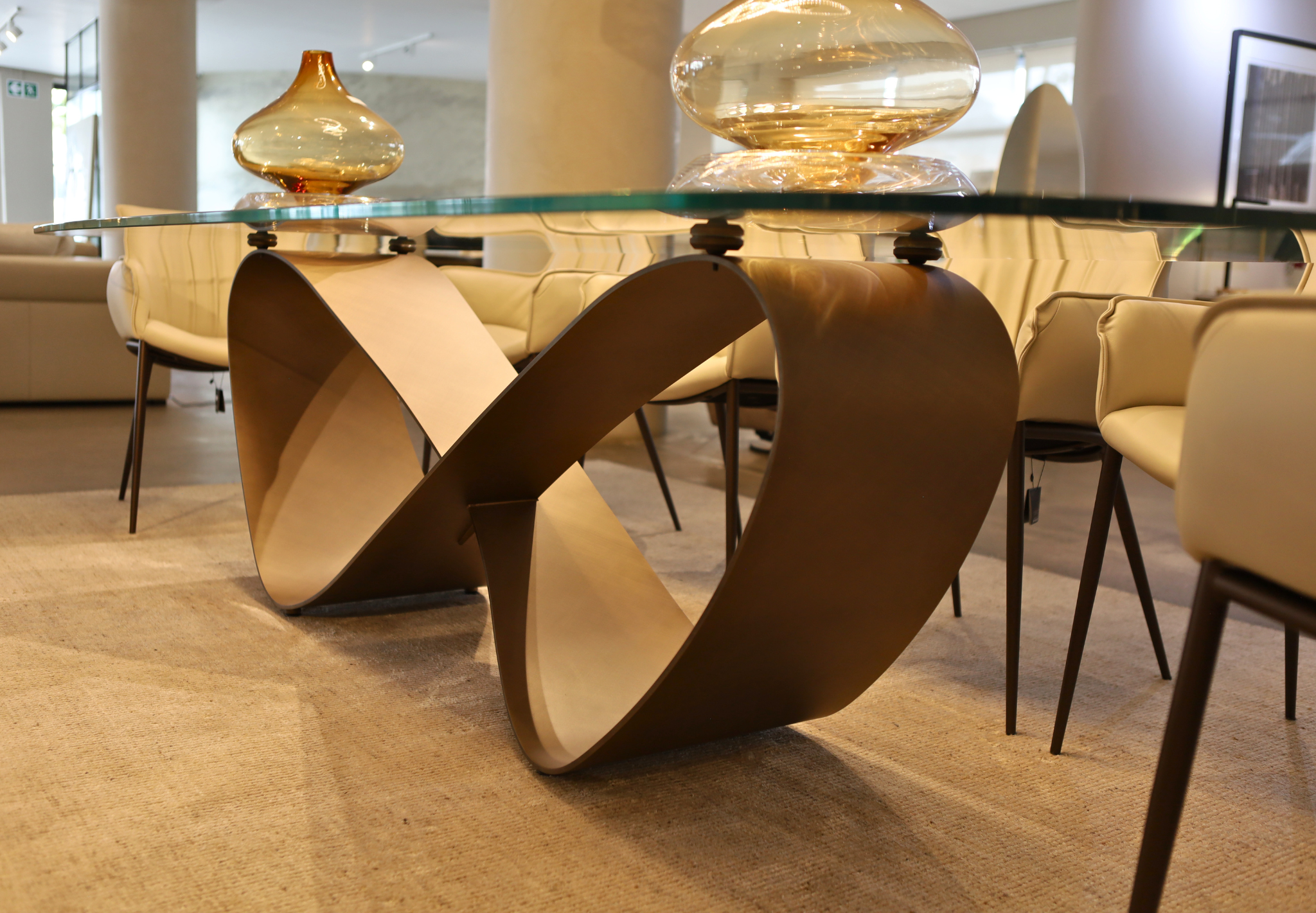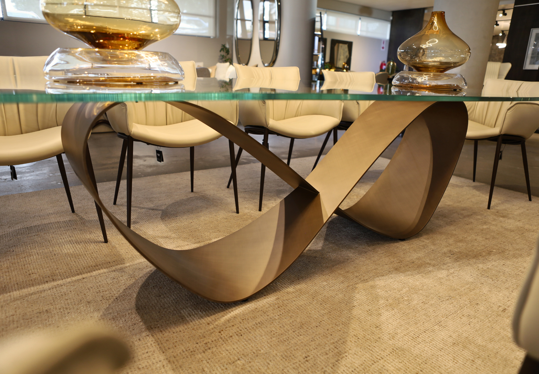 The Butterfly Dining Table by Cattelan is a striking expression of movement captured in form. Its sculptural base, crafted in sweeping, folded planes, evokes the delicate strength of wings mid-flight, creating a sense of lightness despite its bold presence.