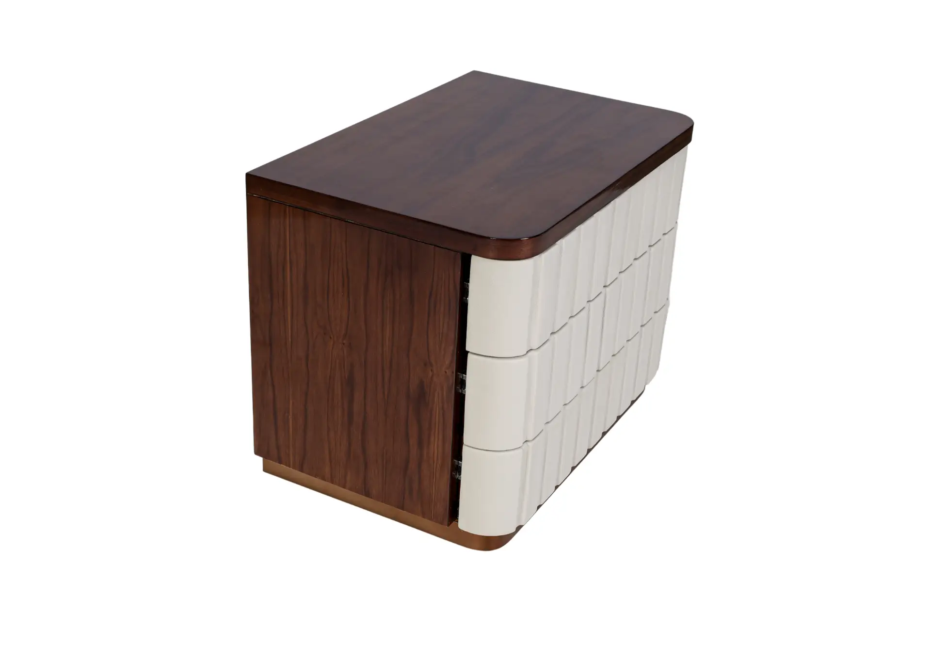 A stunning piece of furniture that adds functionality and style to your bedroom. Crafted from premium European beach wood, this bedside pedestal is durable and elegant. Featuring pleated detailing, the pedestal’s design exudes sophistication and adds a touch of luxury to any bedroom decor. The drawers are finished in a different colour from the gloss wood finish on the frame, providing a beautiful contrast and a unique aesthetic.