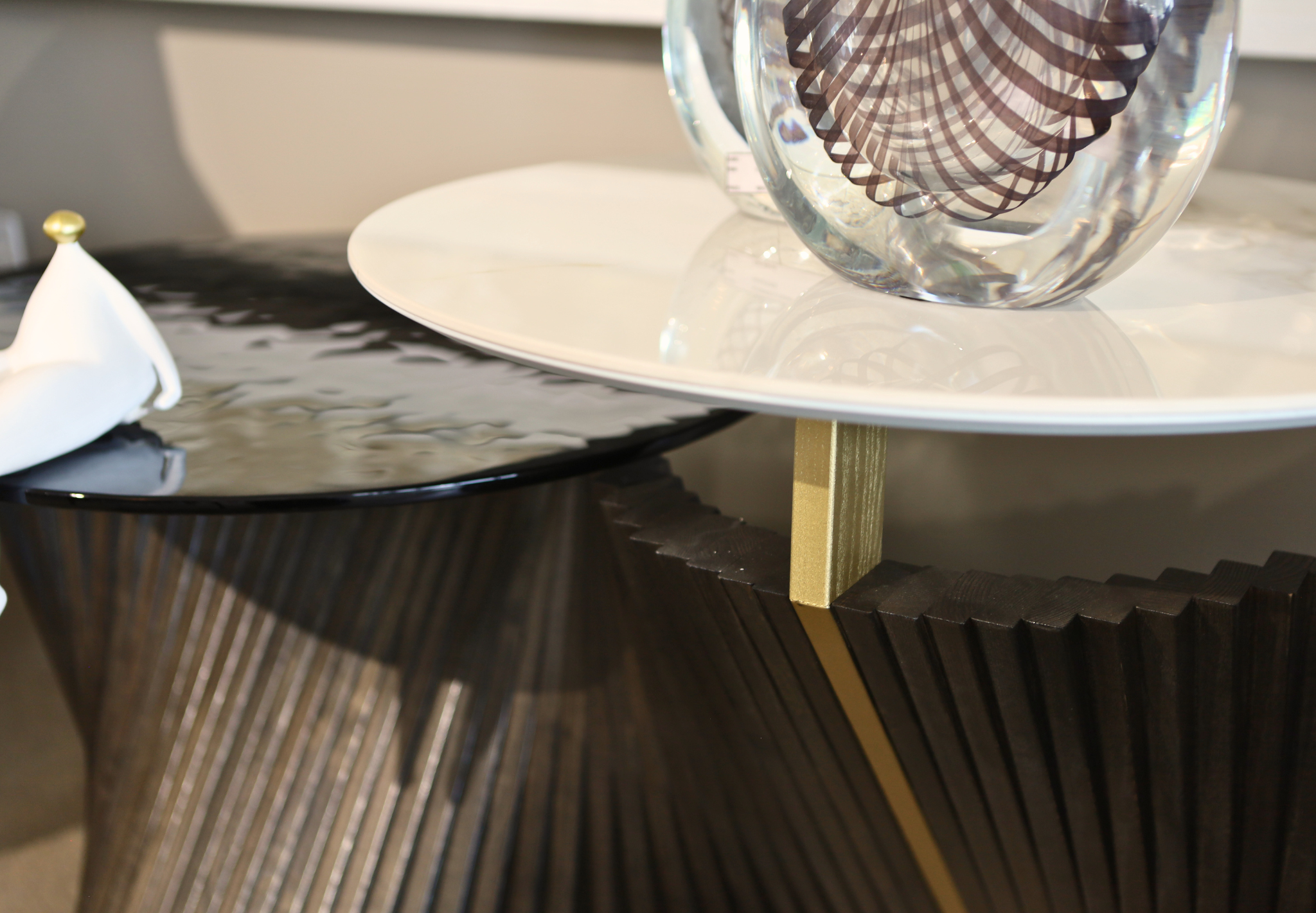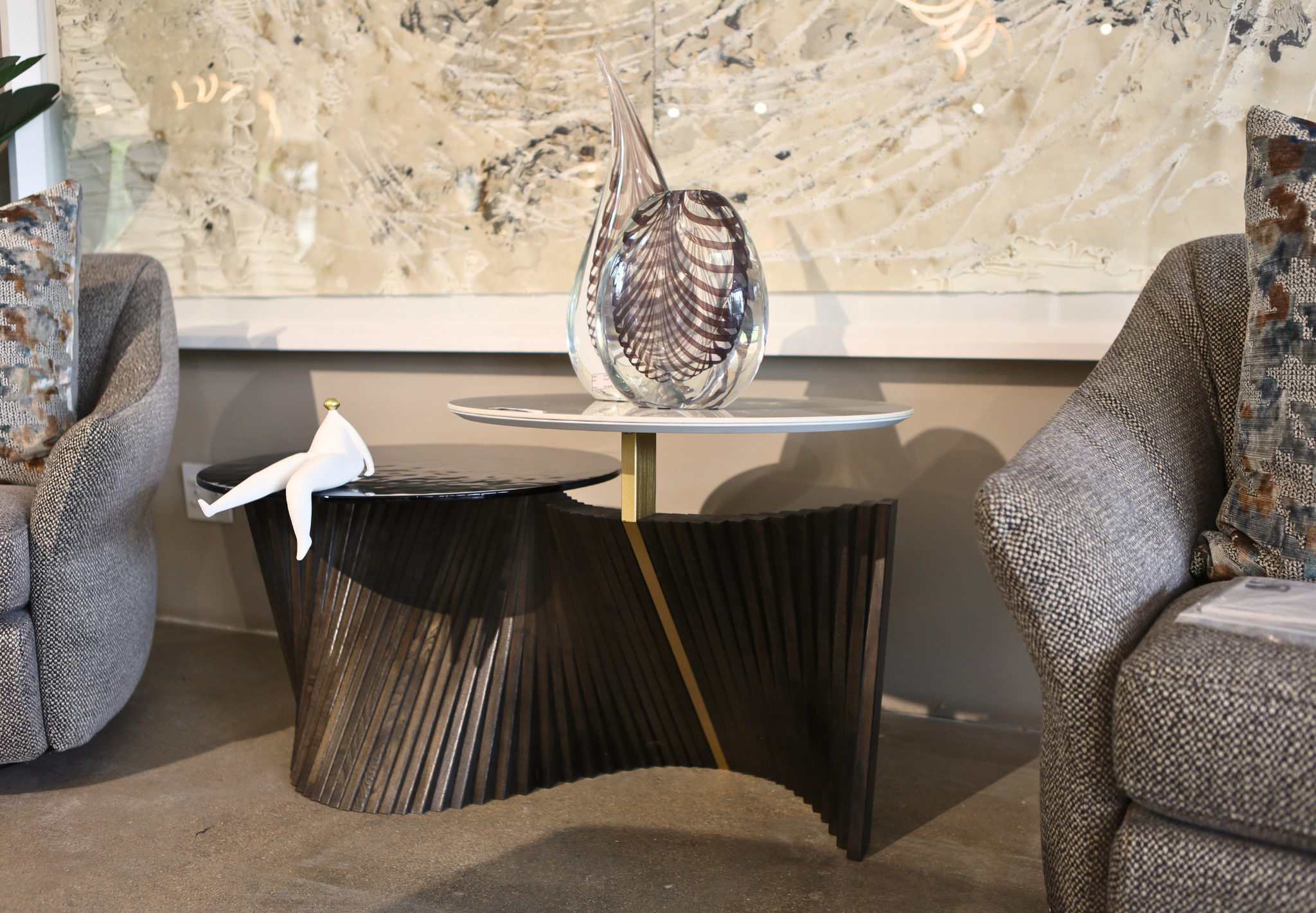 Compact yet impactful, the Eclipse table is perfect for intimate seating areas, where it acts as both a functional surface and a piece of modern artistry.