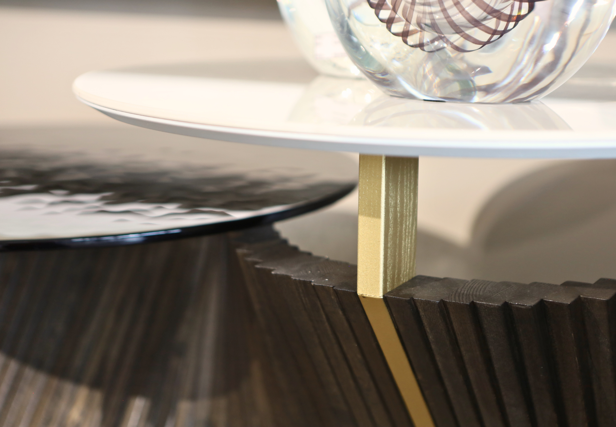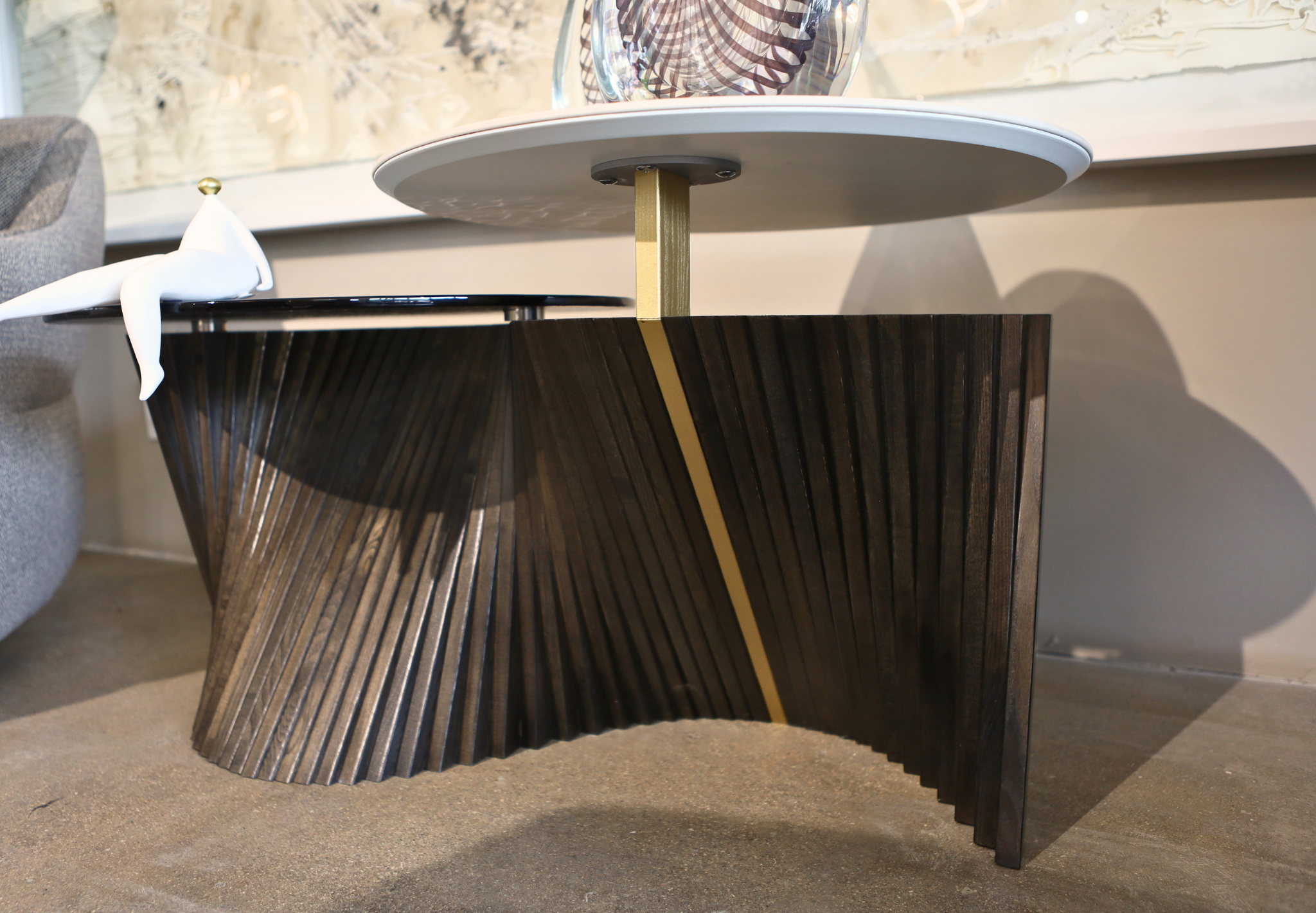 The Eclipse Coffee Table by Natisa is a sculptural interplay of light, shadow, and form. Its striking base, crafted with rhythmic vertical fluting, creates a sense of movement, like ripples frozen in time.