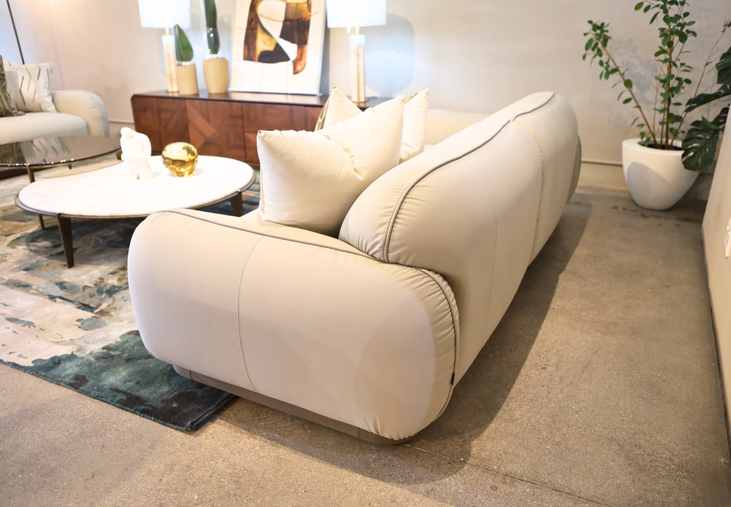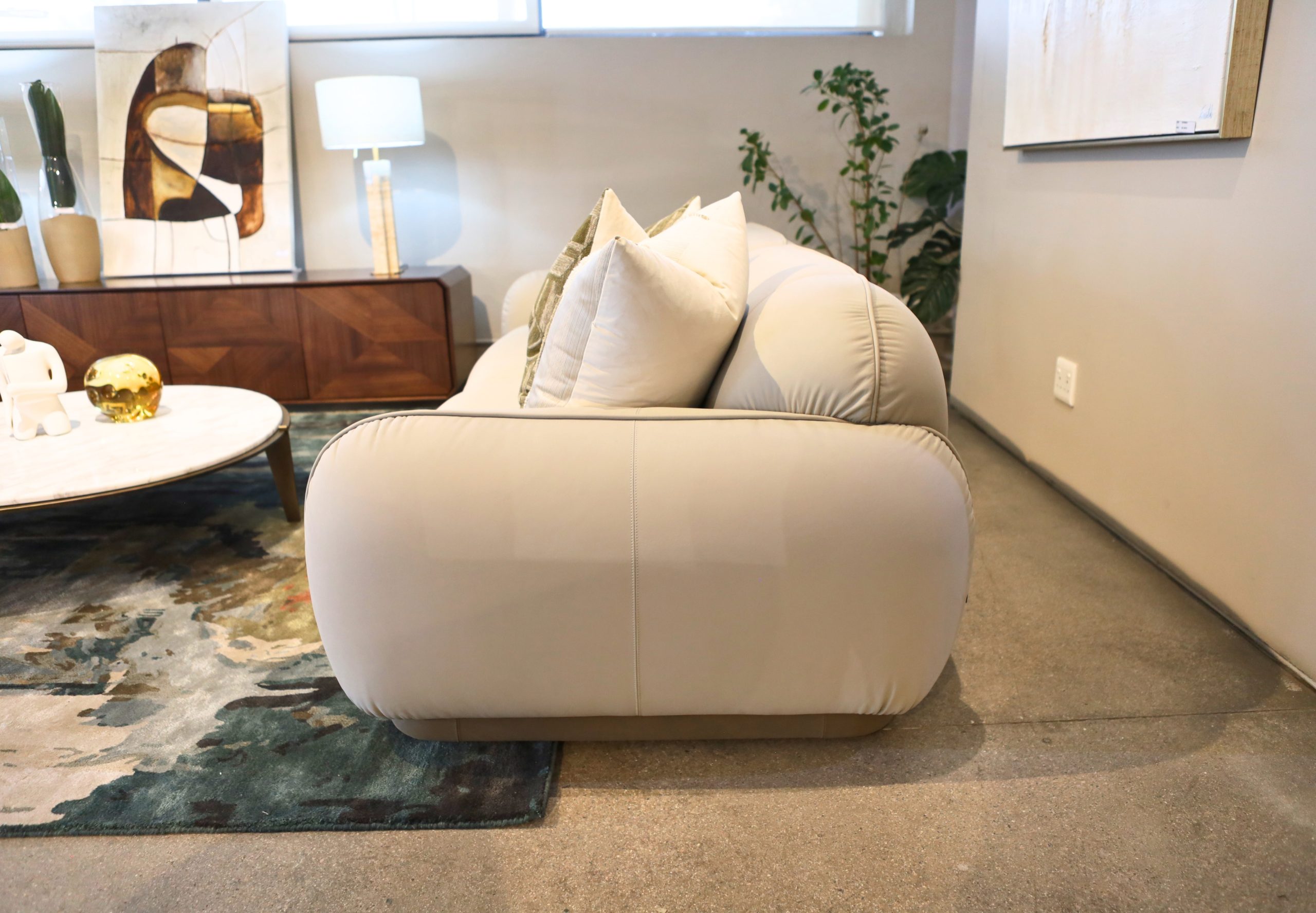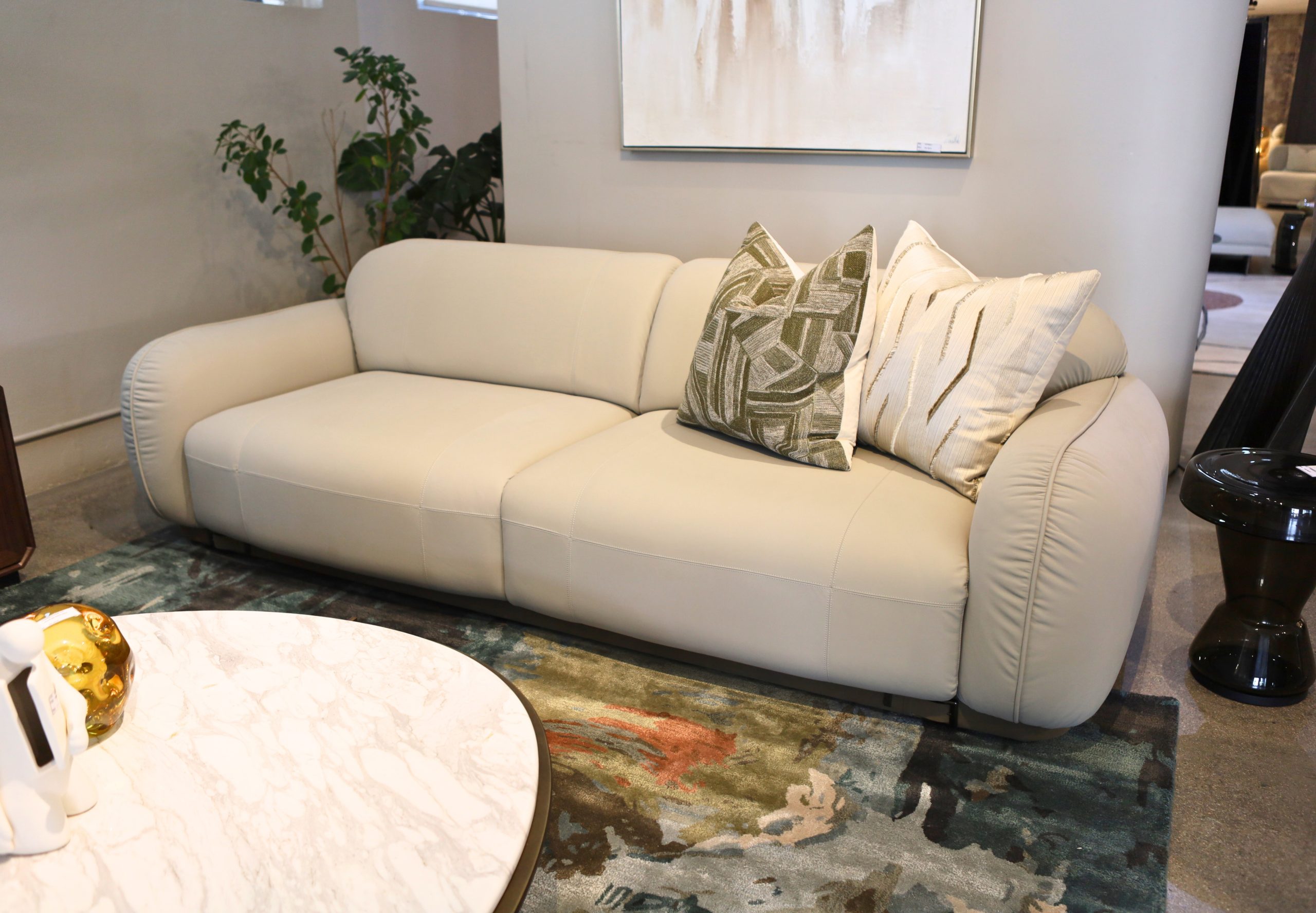 Ideal for contemporary living rooms, the sofa pairs seamlessly with sculptural side tables, textured rugs, and understated coffee tables. It is a statement of quiet luxury, designed to anchor a space without overpowering it.