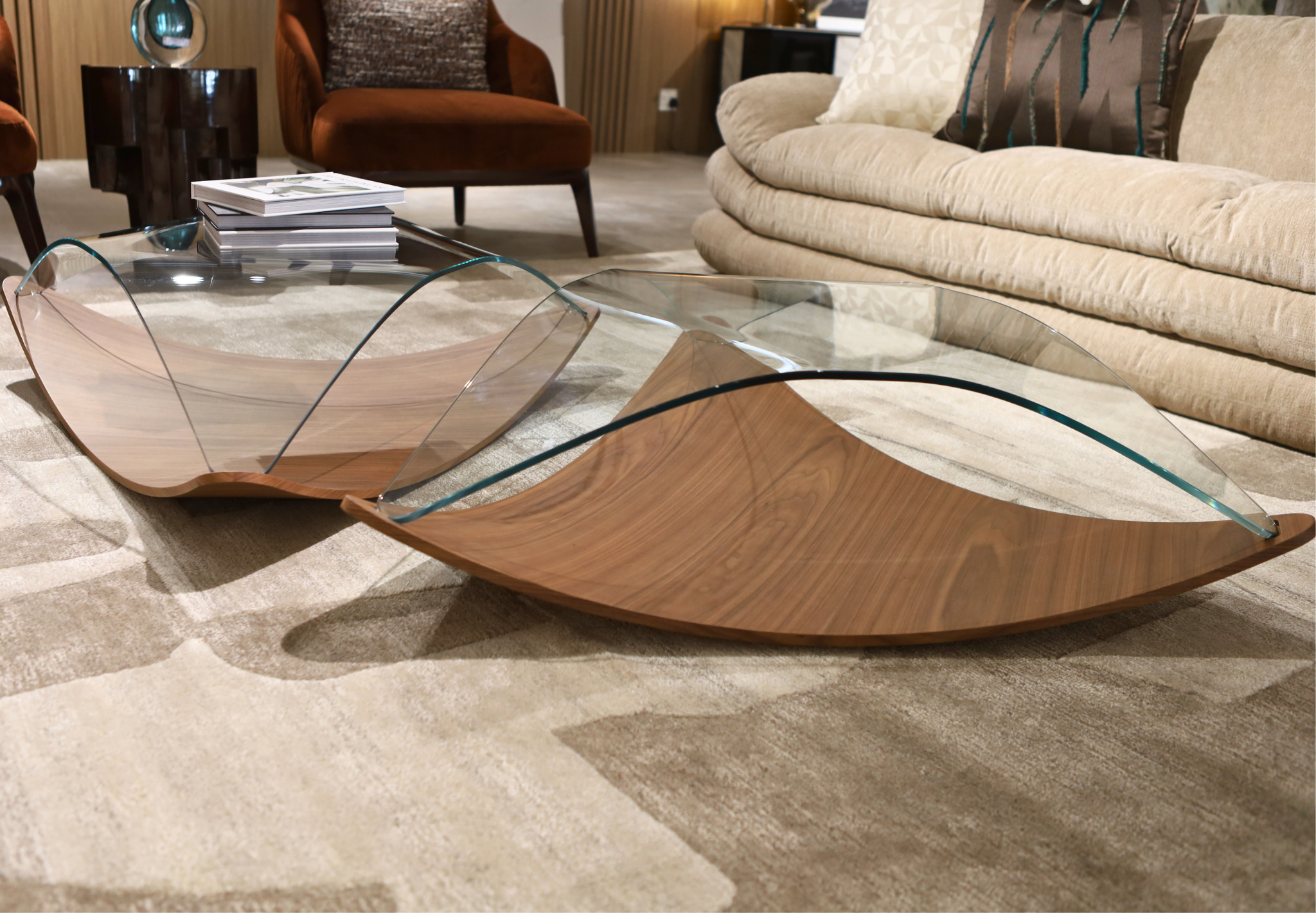 The rich wood grain adds warmth and depth, while the transparent glass surface creates a sense of lightness, allowing the form beneath to take center stage. Its organic silhouette brings movement and artistry into the living space, making it more than just a functional piece, it’s a conversation starter.