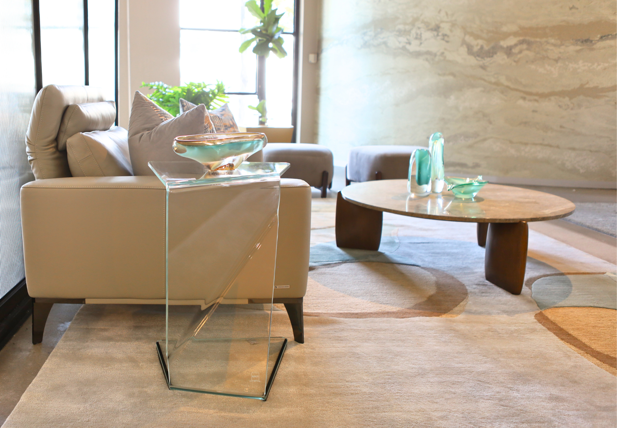 The Sigmy Low Table by Fiam is a celebration of glass in its most fluid, expressive form. Crafted from a single sheet of curved glass, its continuous silhouette bends and folds with effortless precision, creating a piece that feels almost weightless within a space.